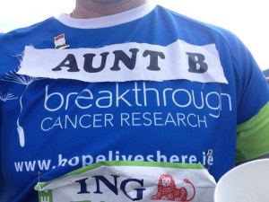 While stretching my calves against the concrete divider on the 59th Street Bridge, I did a final swap of white fabric, peeling the velcro back to replace “AUNT B” with “GERRY O”. Gerry was my mother’s first cousin and “the outstanding Irish surgeon of his generation” according to The Irish Times. His children, Orla and Eoghan, are now instrumental in leading “Breakthrough Cancer Research,” a fundraising organization in Cork that grew out of CCRC and seeks to transform laboratory breakthroughs into clinical treatments for cancer patients. I wrote a separate blog post on Gerry here; he was the reason “Team Gerry” ran 26.2 miles on a cold November day in NYC, and that his children now carry on his legacy to fight cancer is the ultimate testament to him.