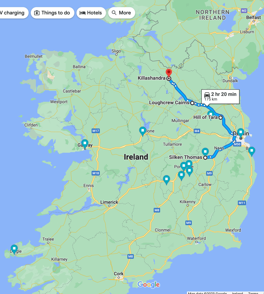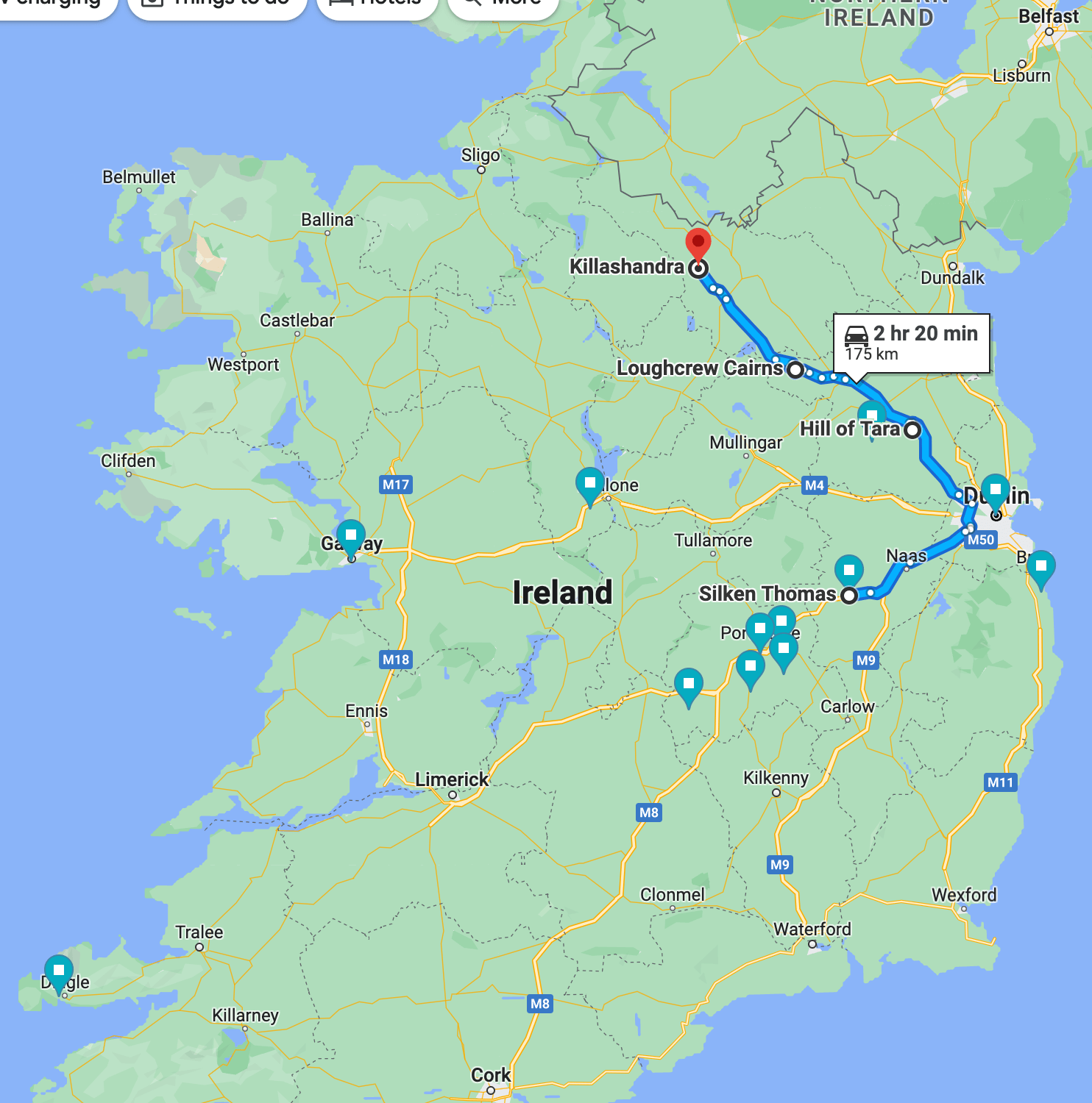 Dad’s family is from Cavan so we decided to take some time to visit; Ann and I have not visited Cavan since Mom and Dad took us in the 1980s, so we decided to visit Killashandra (Grandpa’s family’s home “town”) in the 1800s in County Cavan. Here it is, mapped: