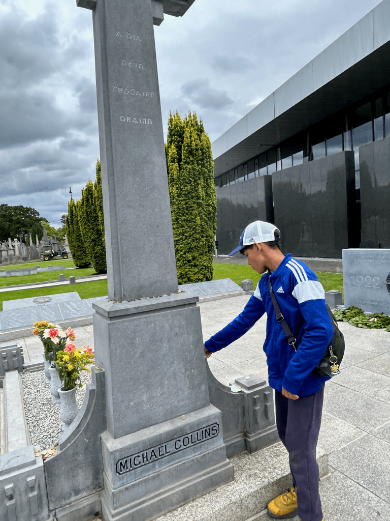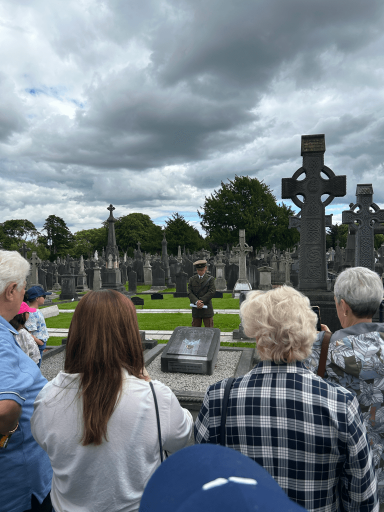 We took the bus to Glasnevin Cemetery where we went on an excellent hourlong walking tour chock-full of Irish history, from Daniel O’Connell to Michael Collins. We happened to also be there on the 109th anniversary of a famous 1915 oration made by Patrick Pearse at the funeral of Jeremiah O’Donovan Rossa; the oration was a catalyzing moment in the fight for Irish independence from England.