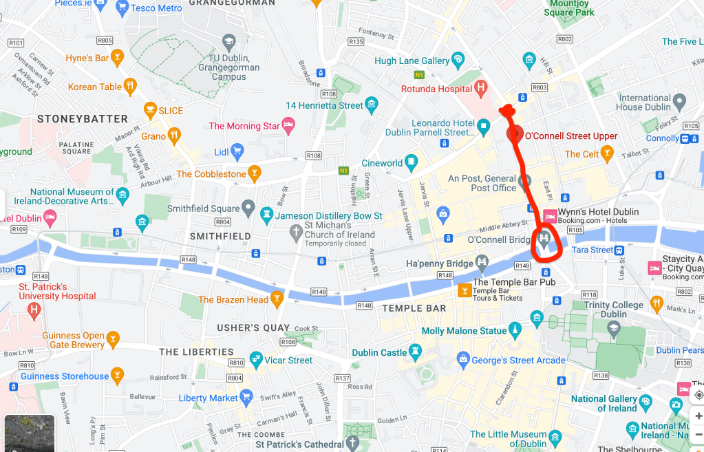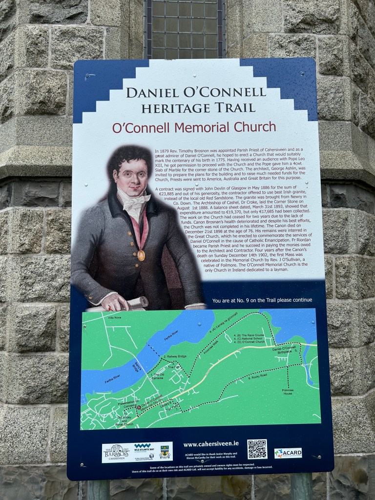 We learned about Daniel O’Connell, called “the Liberator” for his political gains earned for Catholics, throughout our trip. He is the founder of Glasnevin Cemetery which was formed to be a home for all in Ireland, regardless of background or creed. The O’Connell Tower dominates the cemetery and is the tallest round tower in Europe. Arjun and I climbed it to the top – 198 steps – and quickly descended back down as it was quite crowded at the tippy-top. We also visited O’Connell Memorial Church while on the Ring of Kerry; it is located in the town of Cahersiveen, County Kerry. O’Connell is also etched into the Dublin map, connecting Parnell Street to the north down to the O’Connell Monument and O’Connell Bridge which crosses the River Liffey.