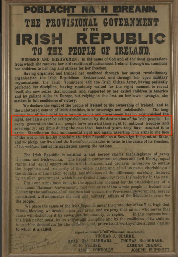 “In every generation the Irish people have asserted their right to national freedom and sovereignty; six times during the past three hundred years they have asserted it in arms.”